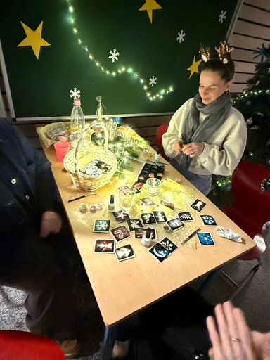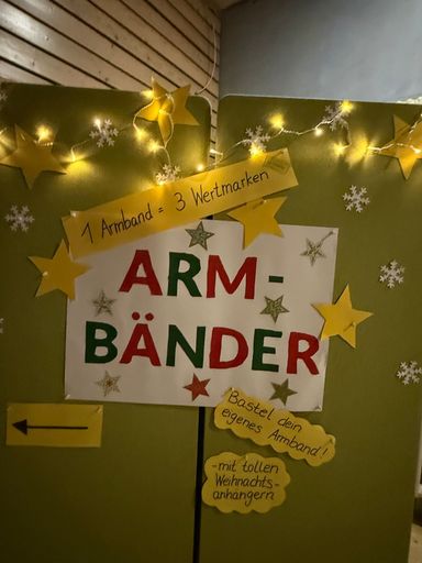 Schon beim Betreten des Schulgebäudes wurde man von einer ganz besonderen Atmosphäre empfangen: Die Schule erstrahlte in festlichem Lichterglanz und ein großer, wunderschön geschmückter Weihnachtsbaum in der Schulhalle sorgte für weihnachtliche Stimmung. Eröffnet wurde das Fest mit einer herzlichen Begrüßung durch unseren Schulleiter Thomas Grundmann. Im Anschluss begeisterte die Klasse 1c das Publikum mit einer schwungvollen Weihnachtsdisco-Performance. Danach konnte das Schulfest offiziell beginnen. Für das leibliche Wohl war bestens gesorgt. An verschiedenen Ständen konnten Hot Dogs, Waffeln und Popcorn gekauft werden. Außerdem lud eine gemütliche Cafeteria mit leckerem Kuchen und Kaffee zum Verweilen ein. Neben den kulinarischen Angeboten gab es zahlreiche kreative Bastelaktionen in den Klassenräumen. Die Kinder hatten unter anderem die Möglichkeit, Weihnachtsarmbänder zu basteln, kleine Engel selbst herzustellen, glitzernde Weihnachtscupcakes aus Weihnachtskugeln als Baumschmuck zu gestalten, Seife herzustellen oder stimmungsvolle Weihnachtslichter aus Marmeladengläsern zu basteln. Am Stand der OGS erfreuten sich die funkelnden Weihnachtstattoos mit Glitzer großer Beliebtheit.