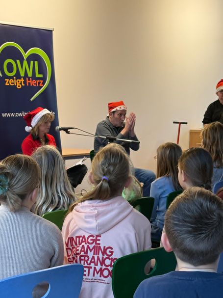 Am Dienstag, dem 9. Dezember 2025, erlebten die Schülerinnen und Schüler der vierten Klasse der Grundschule Knetterheide in der zweiten Schulstunde von 9 bis 10 Uhr eine ganz besondere weihnachtliche Autorenlesung im Rahmen der Kampagne „OWL zeigt Herz“.