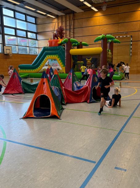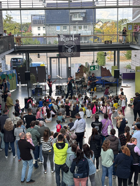 Ein echtes Highlight des Tages war das mitreißende Konzert der Kinderrockband Randale, das in der Schulhalle stattfand und Jung und Alt gleichermaßen begeisterte. Wer sich nach all der Musik noch auspowern wollte, konnte das in der Turnhalle tun, wo zwei riesige Hüpfburgen für Begeisterung sorgten.