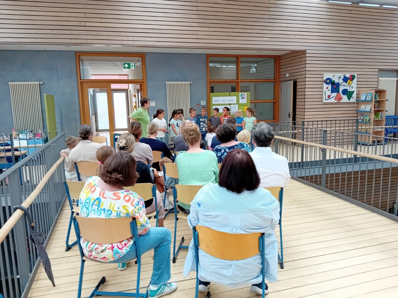 Am vergangenen Montag (23.06) fand unser diesjähriges Sportfest bei fast strahlendem Sonnenschein statt. Alle Jahrgänge traten mit viel Motivation und Freude zu den verschiedenen Disziplinen des Sportabzeichens an. Es wurde geworfen, gesprungen, gerannt und gelacht – und natürlich auch geschwitzt! Besonders beeindruckend war der Teamgeist unter den Kindern: Die älteren Schüler und Schülerinnen der Jahrgänge 3 und 4 begleiteten ihre Patenkinder aus den Klassen 1 und 2 mit großer Sorgfalt und Verantwortungsbewusstsein durch die Stationen. Alle gaben ihr Bestes und zeigten tolle sportliche Leistungen. Ein rundum gelungener Tag!