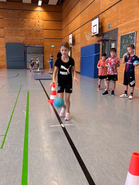 Am vergangenen Freitag fand zum dritten Mal in Folge der Grundschulaktionstag der Handball-AG unter der Leitung von Frau Jacobsmeier und der Unterstützung ihres Mannes Rafael Jacobsmeier (3. Liga-Trainer des TuS Spenge) statt. An verschiedenen Stationen konnten die Schülerinnen und Schüler ihr Können in Koordination, Werfen, Fangen, Prellen und Geschicklichkeit zeigen und Punkte für ihren Hanniball-Pass sammeln.
