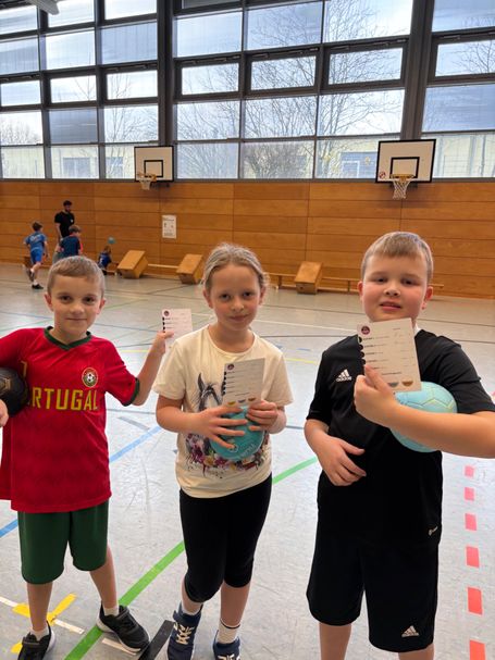 Zum Abschluss erhielt jedes Kind eine Eintrittskarte für ein Spiel des TuS Spenge sowie vom Verein Handball Bad Salzuflen einen Schoko-Weihnachtsmann – eine tolle Überraschung kurz vor den Ferien.