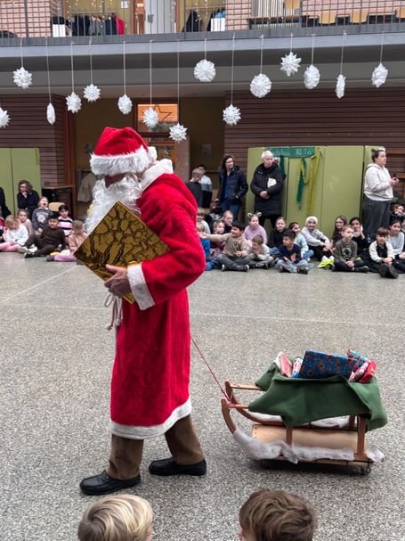 An der diesjährigen Nikolausfeier der Schule nahmen alle Klassen der Schule teil. Sie wurde umrahmt von Tanz, Musik der Chor AG, Klassenbeiträgen und dem hochersehnten Besuch des Nikolauses.